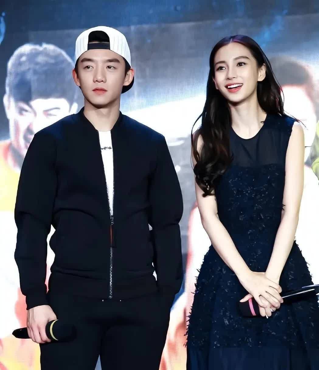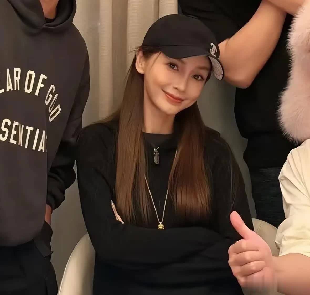 Angelababy站在中间,穿着黑色休闲装,戴一顶帆布帽。她脸上没有浓妆,只涂了淡淡的口红,双手交叉放在身前。郑恺站在她左边,双手插在兜里,脸颊比十二年前圆润了一些,眼泡微微凸起。李晨在右边,穿了件黑色外套,对着镜头比了个耶。陈赫站在最外侧,戴着一顶兔耳朵棉帽,竖起大拇指,笑容还是那种没心没肺的样子。