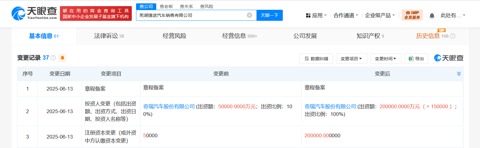 天眼查App显示,近日,芜湖捷途汽车销售有限公司发生工商变更,注册资本由5亿人民币增至20亿人民币股指配资开户,增幅300%。